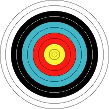 - الهدف: قطره 1,22 متراً، يبعد على الرامي مسافة 70 متراً. ترتفع نقطة الوسط فيه عن الأرض 1,3 متر.