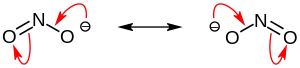 أيون النتريت ليس مستقيما وإنما يشكل زاوية مقدارها 115° حيث تتمركزها ذرة النتروجين. وهو يوجد في شكلين متصاوغين رنينيًا، أي تتبادل الرابطة الازدواجية بين اليمين واليسار بصفة مستمرة، كما يوضح الشكل.