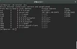 |url=(مساعدة). اطلع عليه بتاريخ 2 أغسطس 2014.هذا البرنامج قديم. استبدال netstat هو ss. استبدال netstat -r هو ip route. استبدال netstat -i هو رابط ip -s. استبدال netstat -g هو ip maddr.