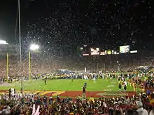 نثر القصاصات الورقية الملونة احتفالا بعد انتهاء مباراة رياضية