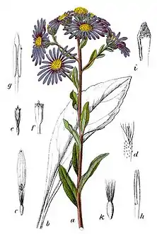 ![]() لوحة تظهر إثني عشر نوعًا من نباتات الفصيلة النجمية | |