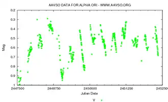 المنحنى الضوئي لمنكب الجوزاء وهو متغير شبة منتظم