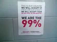 نحن ال99% هو شعار سياسي يُستخدم بشكل كبير وقد صاغته حركة إحتلوا . لقد كان الشعار، اسم لمدونة أطلقت على موقع تمبلر في نهاية آب من 2011، وهو تباين في العبارة "نحن 99٪" من نشرة أغسطس 2011 للجمعية العامة لمدينة نيويورك. وتشير الإحصاءات ذات الصلة، وال 1٪، تشير إلى أعلى 1٪ من أغنى الناس في المجتمع التي لديها حصة غير متناسبة من رأس المال، والنفوذ السياسي، ووسائل الإنتاج، و ال99% تشير إلى باقي الشعوب التي لا تملك شيئاً مقارنة بال1%.