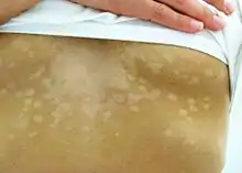 النُّخَالِيَّة المُبَرْقَشَة (بالإنجليزية: Pityriasis Versicolor) هي مرض فطري يصيب الإنسان وتسمى أيضًا السعفة المبرقشة Tinea Versicolor.[1][2][3] تسببها فطور المالاسيزية النخالية Malassezia Furfur. تستعمر الفروة وأعلى الجذع والثنيات وتصيب كلا الجنسين في عمر الشباب، وتندر إصابتها للأطفال وفي الأعمار المتقدمة تنمو في بيئة حارة ورطبة وغنية بالدسم.