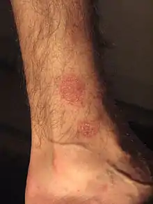 ![]() ظهر شخص مصاب بالنخالية الوردية ظهر شخص مصاب بالنخالية الوردية | |
