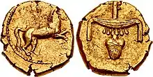 |CitationClass=تم تجاهله (مساعدة) - "It is worth noting that a series of gold staters apparently issued by Tachos' successor, Nectanebo II (361/60-343) bear hieroglyphs meaning "good gold" (nefer nub)" in American Journal of Numismatics (باللغة الإنجليزية). American Numismatic Society. 1989. صفحة 26. مؤرشف من الأصل في 20 يونيو 2020. الوسيط