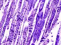 نخر الشريط الانقباضي. Phosphotungstic acid haematoxylin.