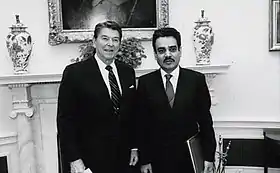 قدم حمدون أوراق اعتماده للرئيس رونالد ريغان في المكتب البيضاوي في عام 1985.