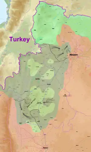 ![]() الحالة في محافظة إدلب حتى 11 يناير 2019 | |||||||