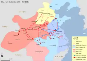 ![]() خريطة الصين المنقسمة خلال النزاع بين تشو وهان. | |||||||||||