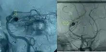 |CitationClass=تم تجاهله (مساعدة) - Piotin M, Spelle L, Mounayer C, et al. (2007). "Intracranial aneurysms: Treatment with bare platinum coils—aneurysm packing, complex coils, and angiographic recurrence". Radiology. 243 (2): 500–8. doi:10.1148/radiol.2431060006. PMID 17293572. مؤرشف من الأصل في 7 أكتوبر 2008. الوسيط
