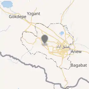 يقع موقع المدينة الأثري على بعد 18 كيلومتراً إلى الجنوب الغربي من مدينة عشق آباد وموقع المدينة غير مأهول حالياً.