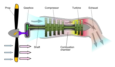 Gearbox:صندوق تروس لنقل الحركة إلى مروحة الدفع.