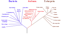 النسب في التطور هو تعاقب الأنواع والذي يكون خط نسب؛ كل نوع هو نتيجة مباشرة للانتواع لسلف نوع مباشر.[1][2] النسب هو فرع في شجرة الحياة التطورية. تحدد الانساب التطورية عادة عن طريق استخدام تقنية النظاميات الجزيئية. دائما ما تصور الانساب كأفرع لشجرة المحتد؛ فعلى سبيل المثال تظهر الشجرة الموجودة بالصورة نشعب الحياة إلى ثلاثة أنساب مبكرة: البكتيريا والعتائق وحقيقيات النوى.
