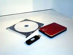 - الأقراص المدمجة كـقرص مضغوط، قرص مرن، دي في دي، وأقراص بلو راي