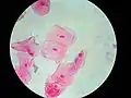 | مكعبة | تسمى خلايا هذا النوع بالخلايا المكعبية الظهارية، يعتبر هذا النوع أصغر نوع من الخلايا الظهارية، وكما يدل اسمها تأخذ خلاياها شكل المكعب أي لها طول = العرض = الارتفاع، توجد نواة هذا النوع في منتصف الخلية، توجد الخلايا المكعبية عادةً في الغدد وفي قنوات الغدد وأنابيب الكلية، كما يوجد أيضاً في أحد أنواع البكتريا التي تسبب أمراض تصيب مبايض الإناث وخصى الذكور. |
