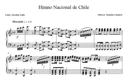 يعود تاريخ النشيد الوطني التشيلي الأول إلى عام 1819، عندما دعت الحكومة إلى تأليف موسيقى وكلمات لهذا الغرض في 19 يوليو من ذلك العام.