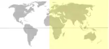 النصف الشرقي من الكرة الأرضية مضلل باللون الأصفر