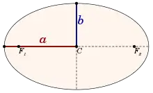 يرتبط نصف المحور الرئيسي مع نصف المحور الأصغر b واللا مركزية e ونصف الوتر العمودي البؤري ℓ بالعلاقة: