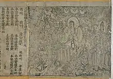 إن أول نص ديني طُبِع لغرض التوزيع كان السوترا الماسية، وهي نص ديني بوذي، وهي أقرب مثال مُسجل من النص المطبوع حيث تحمل تاريخ التقويم الصيني 11 مايو 868 ميلادي.[9]