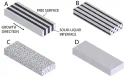 - صب السبائك، مثل الألومنيوم والسليكون والحديد الزهر (في تكوين لسهل الانصهار الأوستينيت-cementite في نظام الحديد والكربون).