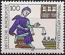 - "Medicinal-Gewicht, Apotheker-Gewicht ist dasjenige Gewicht, nach welchem Aerzte und Apotheker die Quantitäten der Arzneimittel bestimmen. Nur an wenigen Orten werden beide Arten der Gewichte unterschieden und Medicinalgewicht bei dem Einkauf der Arzneiwaaren im Großen von dem Apothekergewicht bei der Anfertigung und dem Einzel-Verkauf in den Apotheken getrennt. In diesem Fall ist das Medicinalgewicht dem gewöhnlichen Landesgewicht beinahe oder völlig gleich und das Pfund wird dann in 16 Unzen getheilt. Bei dem eigentlichen Apothekergewicht aber nimmt man nur einen Theil des Landesgewichts und theilt dieses Pfund in 12 Unzen oder 96 Drachmen oder 288 Scrupel oder 5760 Gran oder 7452 Aß." Krüger, J.F. (1830). Vollständiges Handbuch der Münzen, Maße und Gewichte aller Länder der Erde. Quedlinburg und Leipzig. صفحة 186. مؤرشف من الأصل في 22 أكتوبر 2014. الوسيط