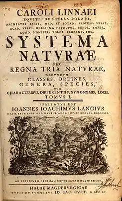 نظام الطبيعة (بالسويدية: Systema Naturae) (صدر عام 1735) هو أحد الأعمال الكبرى التي أصدرها عالم النباتات والحيوانات والفيزيائي السويدي كارولوس لينيوس، وكان المقدمة الأولى في علم التصنيف اللينيوسي. كان نظام التسمية الثنائية الذي اعتمد عليه لينيوس في كتابه قد اخترع منذ أكثر من قرنين من إصدار الكتاب على يَدَيْ الأخوين جوهان وغاسبار بوهان،[1] إلا أنَّ لينيوس هو أول مَن استعمل هذا النظام ضمن كتابٍ تصنيفيٍّ كامل. نشرت الإصدارة الأولى من الكتاب في عام 1735، إلا أنَّ إصدارته الأهم - وهي الإصدارة العاشرة - لم تصدر حتى عام 1758، حيث كان عنوانها: «نظام الطبيعة في ممالك الطبيعة الثلاثة، حسب الطوائف والرتب والأجناس والأنواع، ومع الخصائص والاختفات والنظائر والأماكن» (بالسويدية: Systema naturæ per regna tria naturæ, secundum classes, ordines, genera, species, cum characteribus, differentiis, synonymis, locis).