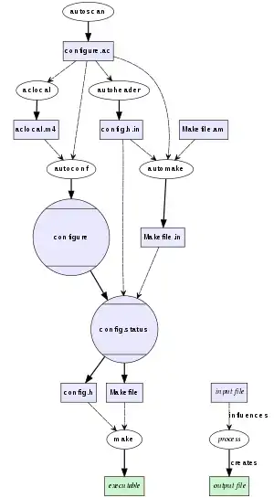 خريطة تدفق لأداتين في نظام بناء جنو، هما autoconf وautomake.