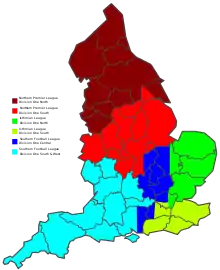 - الدوري الممتاز الشمالي الدرجة الممتازة (بالإنجليزية: Northern Premier League Premier Division) والدوري الجنوبي الدرجة الممتازة (بالإنجليزية: Southern Football League Premier Division) ودوري إسثميان الدرجة الممتازة (بالإنجليزية: Isthmian League Premier Division) (مستوى 7، 24 نادي في كل دوري، تُلعب توازياً): البطل من كل دوري يتأهل مباشرة، المراكز 2-5 من كل دوري يلعبون أدوار اقصائية في ما بينهم يحصل الفئز بها على المقعد المؤهل الثاني. آخر 4 مراكز يهبطون إلى دوريات المستوى 8 حسب ما هو مناسب. إذا لم يتساوى عدد الأندية بين الدوريات بعد عملية الصعود والهبوط، يتم نقل نادي أو أكثر بين الدوريات حتى تتساوى مجدداً.