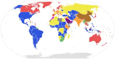 الخط المائل يشير للدول ذات الاعتراف المحدود.