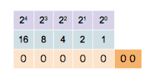 - 1001012 (2 صغيرة مكتوبة أسفل العدد تشير على أنه نظام ثنائي)