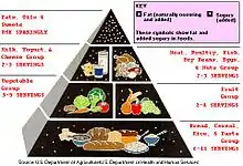 - "MyPyramid". USDA. Archived from the original on April 23, 2011. Retrieved April 23, 2011. نسخة محفوظة 20 يوليو 2006 على موقع واي باك مشين.