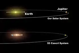 من النظم الكوكبية التي اكتشفت حتى الآن بالإضافة إلى المجموعة الشمسية الأمثلة التالية: