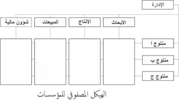 وتسمى أيضا "هيكل المنتجات". تنشئ هذه المؤسسات شعبة لكل وظيفة تحتاجها للقيام بعملها. تحتوي كل شعبة كافة الموارد الضرورية للقيام بوظيفتها. ويمكن تصنيف الشعب من وجهات نظر مختلفة. يمكن أن يكون التمييز على أساس جغرافي (قسم في محافظة أو دولة) أو على أساس المنتج أو الخدمة التي تقدمها (منتجات مختلفة بحسب العملاء: للمنازل أو الشركات). وفي مثال آخر، يمكن لشركة صناعة السيارات انشاء شعبة لكل طراز من سياراتها: السيارات الرياضية متعددة الاستخدامات، وشعبة آخر للسيارات الصغيرة، وآخرى لسيارات السيدان. ويمكن أن يكون لكل شعبة قسم مبيعات الخاصة بها وقسم الهندسة أوأقسام للتسويق.