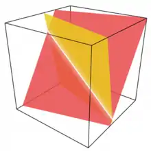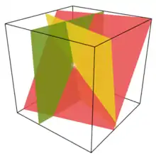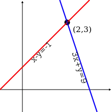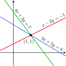 هو نظام معادلات خطية يضم ثلاث معادلات خطية تحوي ثلاث متغيرات هي x و y و z. حل نظام خطي ما تتمثل في إعطاء قيمة عددية لكل متغيراته حيث تتحقق جميع معادلاته في آن واحد. حل المثال السابق يعطي كما يلي: