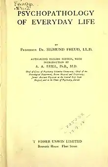 علم النفس من الحياة اليومية يتعبر واحد من أهم الكتب في علم النفس، كتبه فرويد عام1901 و وضع الأساس لنظرية علم النفس التحليلي و يحتوي الكتاب على 12 فصل تتحدث عن نسيان الأشياء كالأسماء و ذكريات الطفولة و الأخطاء و الحماقات و زلات اللسان و تحديد اللاواعي . يعتقد فرويد أن هناك أسباب خلف نسيان الأشياء كالكلمات و الأسماء و الذكريات و يعتقد أيضا أن الأخطاء في الكلام و المعني بها حاليا بالهفوات أو الزلات الفرويدية لم تكن بمحل صدفه و لكن " ديناميكية اللاواعي " تكشف شيء ذو معنى . و اقترح فرويد أن علم النفس اليومي لدينا هو اضطراب بسيط في الحياة العقلية و الذي سرعان ما قد يمر . و على كل هذه الأفعال للحصول على أهمية كبيرة ; فبأتفه زلة لسان أو قلم تنكشف مشاعر الناس الخفية والسرية و خيالاتهم . بالإضافة إلى ذلك اندماج علم الأمراض بالحياة اليومية و أشار إليه فرويد من خلال الأحلام و النسيان و المتغيرات، و استخدم هذه الأشياء ليقدم حجته لوجود اللاواعي الذي يرفض تفسير أو احتواء الوعي . فسر فرويد بأن نسيان بعض الأحداث في حياتنا اليومية قد يكون نتيجة للقمع و الإخماد والإنكار و التشرد و التحديد . و ميكانيزمات أو وسائل الدفاع تحمي أنا الشخص، كما ذكر فرويد في كتابه علم النفس المرضي للحياة اليومية :" تندمج الذكريات المؤلمة مع النسيان المحفز و هذه حالة خاصة " .