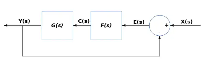 في هذه الحالة فإن الدالة F تعبر عن دالة التحويل الخاصة بالمتحكم controller، والدالة G تعبر عن دالة التحويل الخاصة بذراع التشغيل actuator، وبالتالي فإن: