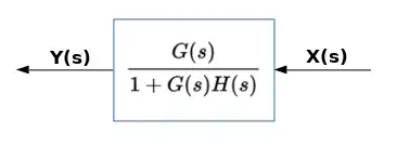 وهي معادلة تعبر عن العلاقة بين مخرج النظام Y ومدخل النظام X، وبالتالي فهي معادلة دالة التحويل transfer function التي تعبر عن النظام المرسوم أعلاه، ولهذا يمكن استبدال مخطط الكتلة أعلاه بكتلة واحدة تعبر عن دالة التحويل الخاصة بالنظام: