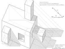 غالبا الظلال تسمح باستكمال المعلومات ثلاثية الأبعاد لشكل ما، لأنها تعتبر رؤيا من مركز إسقاط أخر، أي أن هناك إسقاطين لنفس الشكل: مركز الإسقاط الأول يتطابق مع مركز النظر والاخر مع مصدر الضوء. في كلتا الحالتين، من الضروري معرفة مفاهيم "عمليات الاسقاط والتقاطع" (operazioni di proiezioni e sezioni) لضمان تحقيق النتائج المرجوة. أو السماح لأفضل قراءة لنتائج الرسم واستبعاد غير مفهومة ومتناقضة أحيانا وغير ملائمة في كثير من الأحيان من من وجهة نظر جمالية.