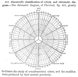 ووفقا لنظرية اللون التقليدية المعتمدة على الألوان الأولية الطرحية، والنموذج اللوني ح ص ز، والتي بدورها مشتقة من مزج الطلاء، فإن مزج الأصفر مع البنفسجي، والبرتقالي مع الأزرق، والأحمر مع الأخضر، يعطي لونا رماديا، فهي الألوان المكملة للرسامين. وتشكل هذه التباينات أساس قانون شيفرويل لتباين الألوان: الألون التي تظهر مع بعضها سوف تتعدل كما بون أنها مزجت مع اللون المكمل للون الآخر. مثلا، عندما توضع قطعة من النسيج الأصفر فوق خلفية زرقاء اللون، فستبدو وكأنها ذات صبغ برتقالي، لأن البرتقالي هو اللون المكمل للأزرق.
