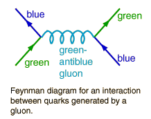 - بداية ببوزون بالقوى النووية القوية وهو الغلوون بوزون (غلوون) و هو القوة المسئول عن تغير لون الكوارك ولون الكوارك ما هو الا خاصيه للكواركات فقط ويطلق على هذه الخصية اسم الشحنة اللونية و تفسرها نظرية ديناميكا لونية كمومية
