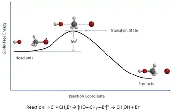 حيث ، و الفرق بين طاقة درجة الصفر للمواد الداخلة في التفاعل وطاقة المركب الانتقالي المثار .