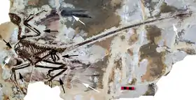 ![]() عينة أحفورية لنوع Microraptor gui | |