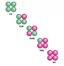 | LDH3 | HHMM | في الدِماغ والكِلية وَالعَضلات الهيكلية | 18-25% | |