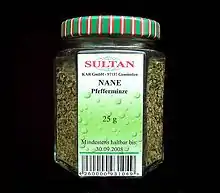 - International Organization for Standardization. "ISO 5563:1984 Dried peppermint (Mentha piperita Linnaeus) -- Specification". Retrieved7 June 2009.