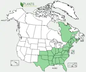 ![]() انتشار النغت المنشاري في أمريكا الشمالية | |