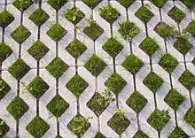 تعتبر رصف الحشائش وشبكات تقوية العشب البلاستيكي (PTRG) ، والخلايا الأرضية ( أنظمة الحبس الخلوي ) أنظمة خلوية ثلاثية الأبعاد لشبكة قرص العسل، مصنوعة من بلاستيك HDPE ذي الجدران الرقيقة أو سبائك البوليمر الأخرى. توفر هذه التعزيزات العشب، وتحقيق الاستقرار في الأرض والاحتفاظ بالحصى. يعزز الهيكل ثلاثي الأبعاد من نقل ونقل الأحمال الرأسية من السطح، وتوزيعها على مساحة أوسع. يعتمد اختيار نوع الشبكة الخلوية إلى حد ما على المادة السطحية وحركة المرور والأحمال. يتم تثبيت الشبكات الخلوية على طبقة أساسية معدة من الأحجار المفتوحة الدرجات (تباعد أعلى الفراغ) أو الحجر الهندسي (أقوى). قد تكون الطبقة السطحية مضغوطة على الحصى أو التربة السطحية مع الحشائش والأسمدة. بالإضافة إلى دعم الحمل، تقلل الشبكة الخلوية من ضغط التربة للحفاظ على النفاذية، في حين تعمل الجذور على تحسين النفاذية بسبب قنوات الجذر الخاصة بها. [3]