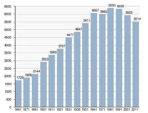 في سنة 1861 بلغ عدد السكان 1٬725 نسمة، وتطور العدد ليصل في سنة 2011 لـ 5٬514 نسمة.
