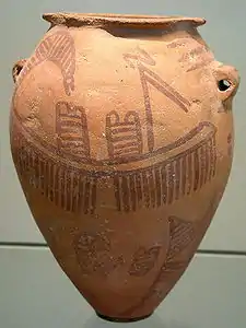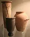 كما صنعت أواني كرية الشكل وطانت تزين برسوم لأشكال هندسية. كذلك انتشر تزيين الأواني بأشكال للحيوان والنبات . وعثر على أواني من تلك الحقبة عليها رسومات مراكب ذات مظلات وأعمدة عليها أعلام أو نقوش تعبر عن بعض المقدسات.