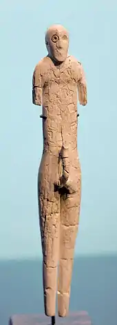 يميز تلك المرحلة تشكيلات خزفية قمعية الشكل، تتطورت فيما بعد لتصنيع أواني وقوارير، وكانت جميعها من الصناعة اليدوية. ثم بدأ تمثيل الإنسان يتزايد، منهم من ذوي الذقون، وذلك في شكل عصي منحوتة من سن الفيل. وكذلك تمثيل النساء حيث وجد منها ثلاثة من التماثيل الفريدة، ربما يرجع تاريخها إلى حضارة البداري.